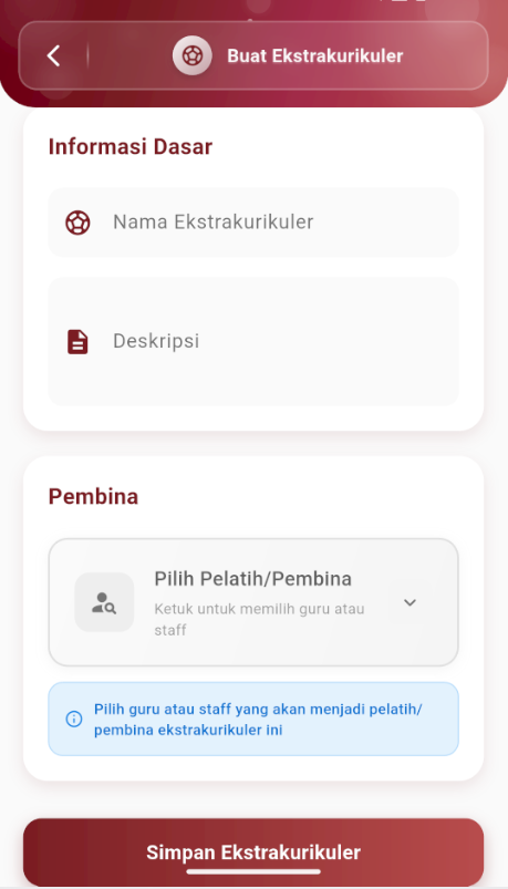 - Enter the Extracurricular Name (e.g., Futsal, Scouts, Dance).