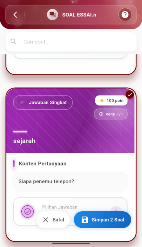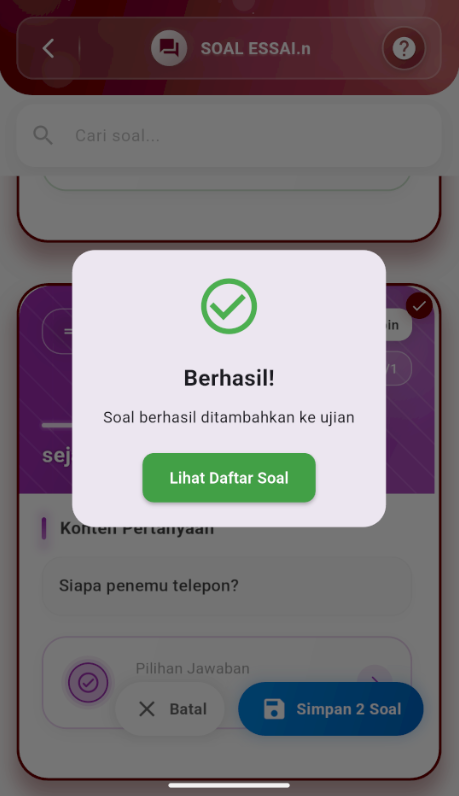 The Add Online Exam Questions menu provides ease for educators in compiling exam questions quickly and flexibly. With a dynamic and accessible interface design, you can directly select questions from the existing question bank without needing to recreate them from scratch.
